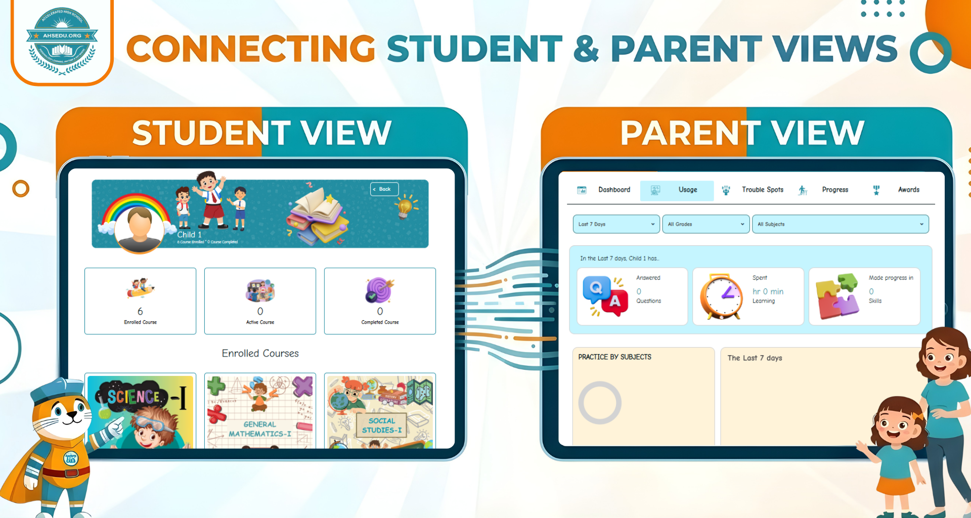 AHSEDU.org offers personalized learning for every student. With a curriculum standardized with USA State Standards, Free interactive videos, Fun and interactive learning content, Constructive assessments, and take-home worksheets we address the unique educational needs of each learner to ensure success.