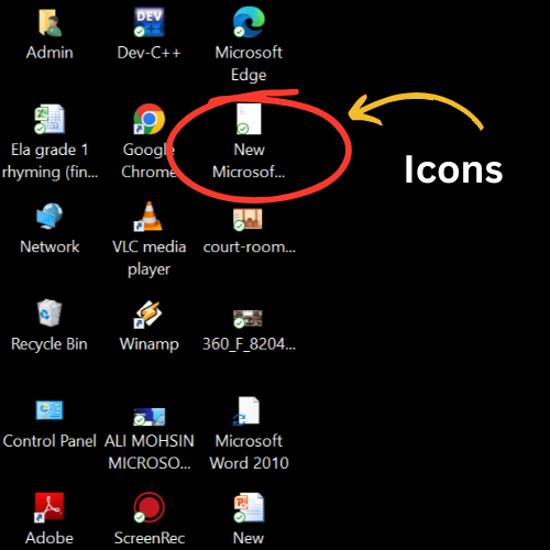 • Match the correct names to the items on the Windows desktop.