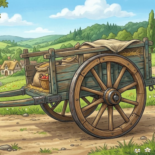 • Wooden cart with circular wheels